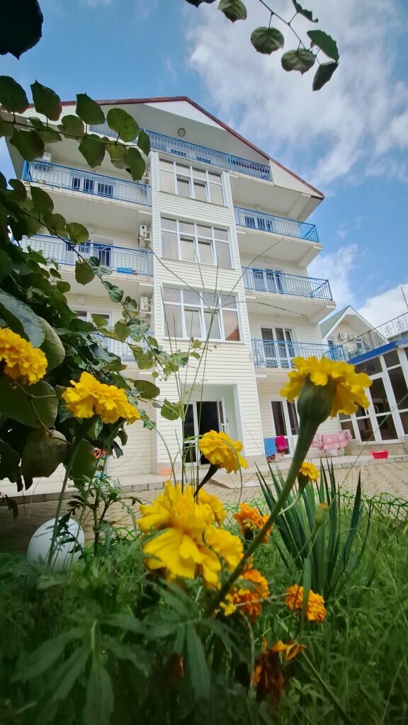 Уютный отель, отзывчивый персонал. Отдыхали с 4 по 6 мая проездом. В номере все удобства, шампунь, гель для душа в стиках и мыло, фен дали по запросу. Микроволновкой можно воспользоваться на ресепшн, чайник на этаже, тарелку с ножом также предоставили для пользования в номере. Предоставляется вкусный, сытный завтрак (рисовая каша +бутерброд, макароны с сосиской+бутерброд, чай, кофе). Море в шаговой доступности. В 5 минутах хотьбы столовая, вина Кубани, шашлыки на вынос, магазинчик с выпечкой. Атмосферно на балконе с 3го этажа (вид на горы) наблюдать как самолёты идут на посадку в аэропорт. Ночью звук садящихся самолётов не мешает. На территории гостевого дома есть мангал, качели, столики.