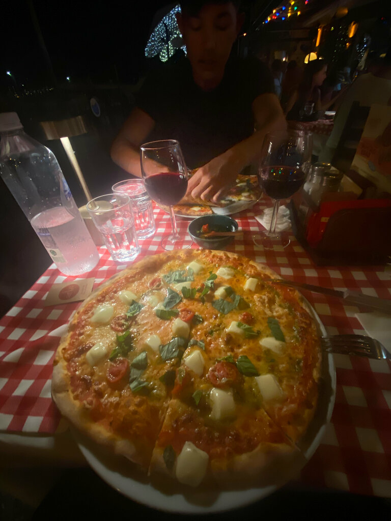 Very tasty pizza, definitely not worse than Moscow pizza. Everything from the heat to the heat, as well as a classic aperol. I recommend this place for lost Russian souls. I didn't take the photo, I was too hungry. Pizza, 2 cocktails aperol and dessert ice cream for about 2000 lire, in rubles 4000 rubles for two.