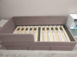 Кровать понравилась. Отличное качество и дизайн. Также, за счёт подъемного механизма, имеется большой отсек для хранения. Ножки установлены увеличенной высоты, поэтому свободно проходит робот-пылесос. Ещё приобрели удобные подушки. Покупкой остались довольны.