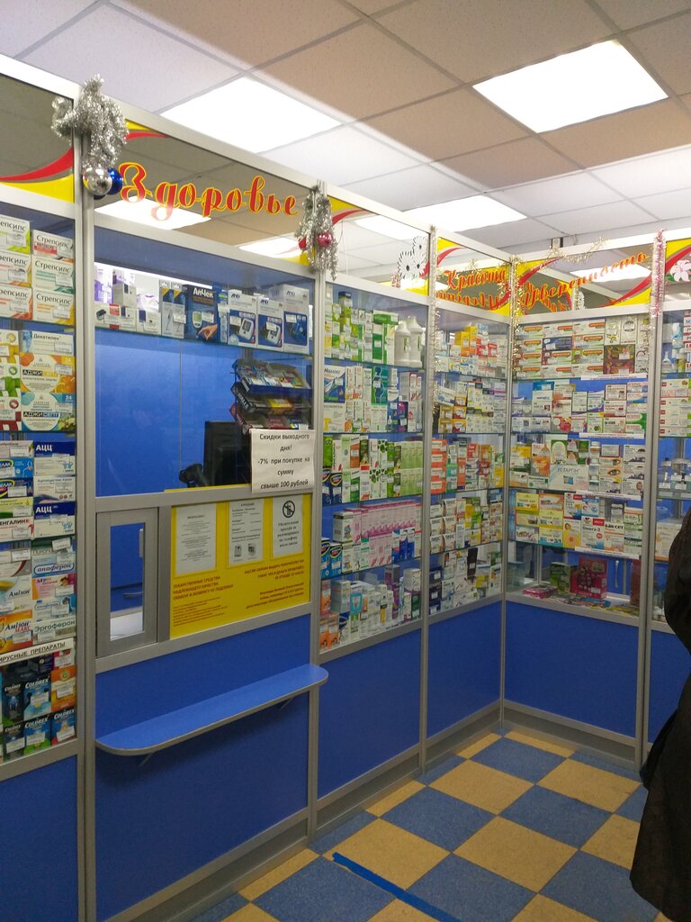 A normal pharmacy. The nearest one is a kilometer away. The range is not universal, but the plus is even that it is there. The staff is friendly.