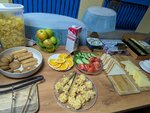 Забронировал номер, 2х комнатный, на 4х человек. В номере нет ни одного стула, нет стола за которым можно было бы попить чай или поработать за компьютером. Имеется кровать и под телевизором мини столик с чайником и телефоном, за которым не посидеть. На просьбу предоставить стол и стулья - отказали... Завтраки хорошие, уборка каждый день.
