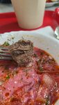 Очень вкусный борщ! Огромный кусок говядины. Если я захочу борщ, то не поленюсь и поеду из Симферополя в Бахчисарай поесть ваш борщ. Мужу понравился плов, дети оценили наггетсы. Столовая однозначно на свои 5 звёзд. Плюс место красивое, шикарный интерьер, чисто и цены радуют. Наелись на 1300 вчетвером. Сент. 25г.
