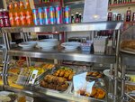 Удачное расположение. Имеется парковка для авто. Кафе-столовая с самообслуживанием. Меню простое с большим выбором блюд. Порции большие. Для дальнобоя отлично. Средний ценник 500-600 рублей. Персонал вежливый и внимательный. Чисто. Рекомендую