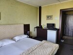 Номер люкс хороший. В номере есть все необходимое для проживания ( от тапочек и халатов до зубных щёток и т.д.), но стандартные номера кардинально отличаются ( сами номера требуют ремонта, телевизор как компьютерный монитор, чайник есть, но розетки рядом нет). При этом в номерах чисто. Завтраки неплохие, голодными точно не останитесь. Отдельно хочется отметить отзывчивый персонал. Вывод такой: все номера категории выше стандарт однозначно советую. Номера категории стандарт не стоят этих денег.