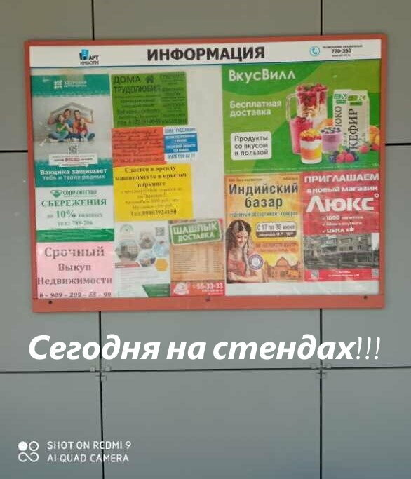 Не советую связываться и вот почему: оплатил размещение на 2 недели, по факту мое объявление присутствовало в 20% оплаченных стендов, и то, там где присутствовало поверх были наклеены сторонние объявления. По факту претензии работник данной конторы вернул, деньги и то после предоставления доказательств и упоминания о подаче иска в суд. Большинство стендов в ужасном состоянии: запотевшее и мутное оргстекло, со следами клея, либо вовсе отсутствует стенд ( хотя за размещение на нем были оплачены деньги)!!! Судя по всему расчет данной конторы на тех заказчиков, кто не проверяет факт выполнения работы. Вывод: хотите просто выкинуть деньги на ветер - сотрудничайте с Арт информ !!!!