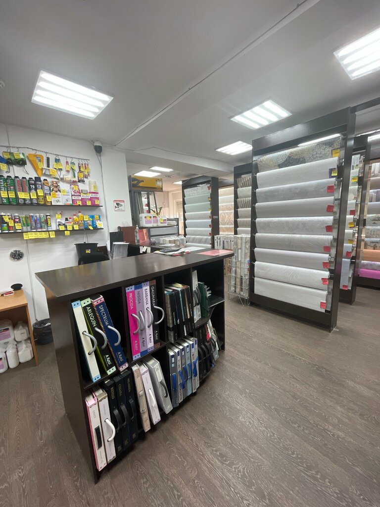 Ассортимент магазина весьма неплох. Коллекции на любой вкус, причем мне нравится,что есть текущий актуальный ассортимент, а не устаревшие обои со скидками в минимум,чтоб продать неискушенному покупателю. Меня лично напрягает продавец,мужчина,если это хозяин,то лучше ему нанять помощника, так ходить за покупателем шаг в шаг, запрещать чуть размотать рулон самой вызывают желание покинуть магазин без покупки,хотя есть,что купить, и это неправильное отношение продавца,не располагает к покупке.... Как-то так.