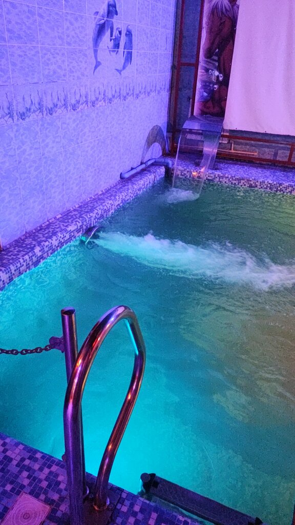 Отмечали день рождения 05.03.2023. Очень понравилось! Бронировали на 4 часа, после решили продлить до 5 часов и хотелось еще) Уютное место, не плохой ремонт, видно, что все не совсем новое (особенно туалет), но все равно вполне опрятно. Наличие разноцветных подсветок и приглушенного освещения создавало дополнительный уют. В день посещения не работало подключение к телевизору и проектору в зоне бассейна, но в итоге силами моей подруги к телевизору удалось подключиться через личный ноутбук и транслировать свою музыку через него. В бассейне приятная вода, хоть и не прям теплая. Не хватало ручек, чтобы можно было держась за них, постоять около водяной струи в бассейне (сносило потоком и приходилось держаться за бортик, что сделать не просто). В помещении очень тепло и влажно, но все равно немного замерзали после бассейна, если не сразу шли париться. Обеденный стол был не очень чистый, но решили проблему влажными салфетками. В целом место очень понравилось, сотрудница ресепшена тоже, впечатления остались хорошие, придем еще)