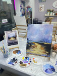 Впервые пришла в студию, так как подарили сертификат. Это идеальное место, если вы хотели попробовать рисовать. Во-первых, вам дают каталог, и вы выбираете, что вы будете рисовать (на других мастер-классах, обычно, одна группа рисует одну картину). Во-вторых, потрясающие преподаватели. Хочется выразить благодарность Тарасу. Очень терпеливый и приятный преподаватель. Под его чутким руководством появился этот закат. Хорошо и доступно объяснял, где надо хвалил. Спасибо! В-третьих, не надо ждать, когда картина высохнет, а потом за ней ехать. Единственное, нигде на сайте не указано, что за подрамник надо доплатить, но ничего. Подбирают их очень красиво 🙂 Однозначно рекомендую эту студию всем 🥰❤️