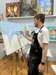 Отличное место для тех, кто любит рисовать. Причем опыт не важен! Все есть на месте, не нужно возить с собой кисти, краски, холст можно подобрать прямо там 👍 Была там одна и с сыном. Очень приятная атмосфера, отличный педагог.
