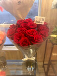 Набор размер M с букетом 15 красных роз Кения (50 см) в корейской матовой пленке