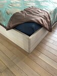 Заказывали каркас кровати из ясеня взамен старого из ДСП. Работа выполнена качественно и в срок. Учли все пожелания. Внешним видом довольны, механизм поднятия матраса работает. Спасибо.