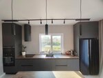 Установили Кухонный гарнитур c фасадами AGT (на основе МДФ). Цвет фасадов поддерживает общий стиль интерьера. При проектировании учли все пожелания заказчика и установили столешницу под окном. Материл столешницы - компакт плита. Техника: посудомое...