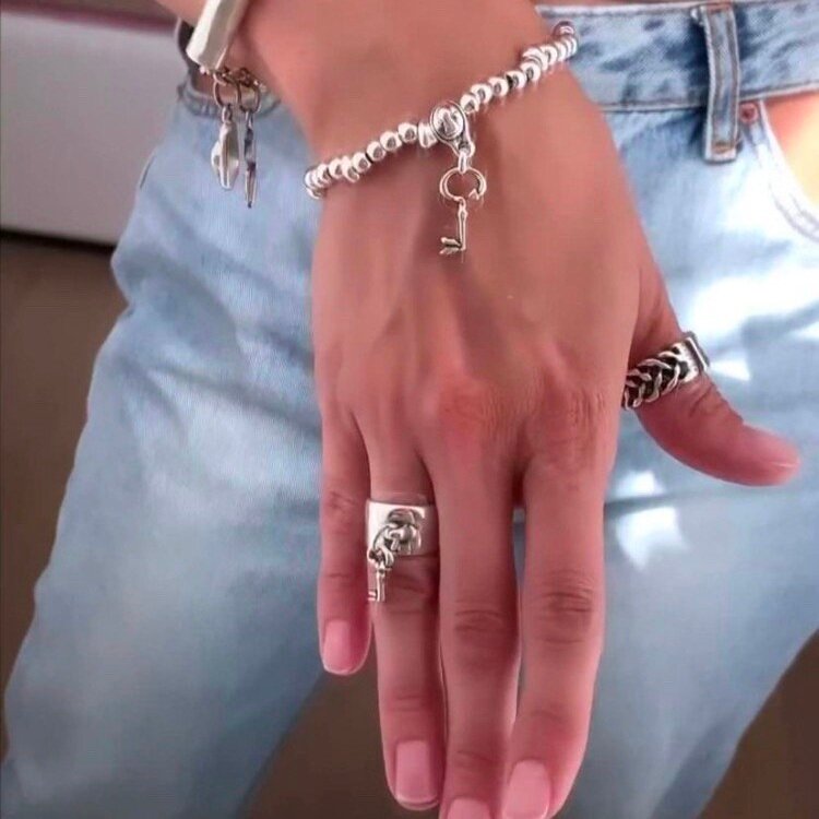 Браслет Ciclon. Ручная работа. Сделано в Мадриде. Материалы: ювелирный сплав Zamak и щедрое серебряное покрытие. Два года гарантии. На одной стороне подвески-изображение луны, на другой-солнца