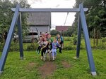 Прекрасные качели на 5+. Основательный деревянный каркас с металлическими опорами внизу. Третий год качается вся деревенская банда и всё целое!