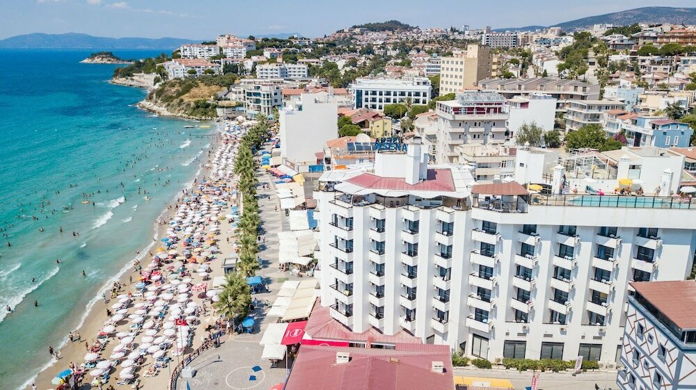 We had a family vacation on August 23, we were satisfied with the choice. The convenient location of the hotel, the very center of Lady Beach, the sea is under the window, the food is good, you can see the chefs are trying. Delicious peaches, watermelons, pears are also a plus of rest. The stop is under the windows, it is convenient to go to the city center. The cheap A101 store is right next to the hotel. And of course the gorgeous views from the hotel to the sunsets over the sea. The downside is that there is not enough high-quality cleaning in the rooms, the plumbing is old, the taps are in a raid. And the lobby on the ground floor lacks a sense of cleanliness. Although the maids worked regularly, they were polite. I liked the hotel in general, the location, the food, the sea view.