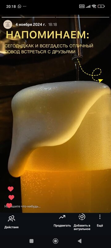 Отличное место для приятного отдыха. Понравилась кухня — блюда вкусные, закуски хорошо подходят к пиву и другим напиткам. Выбор алкоголя достойный, напитки подают качественно. Персонал вежливый и внимательный, обслуживание быстрое, время подачи комфортное. В заведении уютная атмосфера, приятно провести вечер как с друзьями, так и в спокойной обстановке. Остались только положительные впечатления, обязательно зайдём ещё. Единственный недочет в отсутствии WIFI