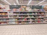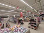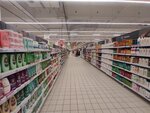 Огромный двухэтажный супермаркет. Всегда на что-нибудь да и есть скидки. Очень вкусная выпечка и готовая еда. Персонал дружелюбный и всегда подскажет где что находится. На кассах самообслуживания дежурят очень хорошие люди готовые подсказать в затруднительных ситуациях.