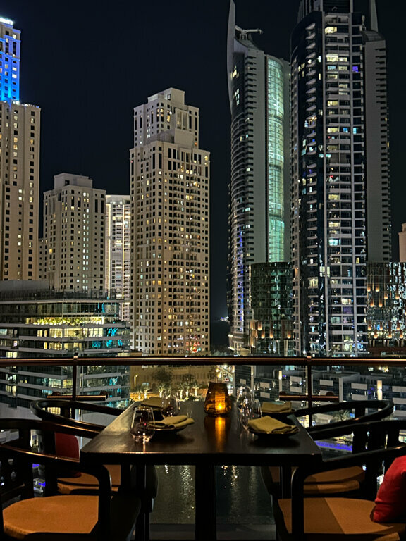 A beautiful restaurant with panoramic views of the Marina, a nice interior, the most spectacular tables on the balcony outside. Go exactly for the view, the food is generally ok, pan-Asian cuisine. The price is standard for Dubai