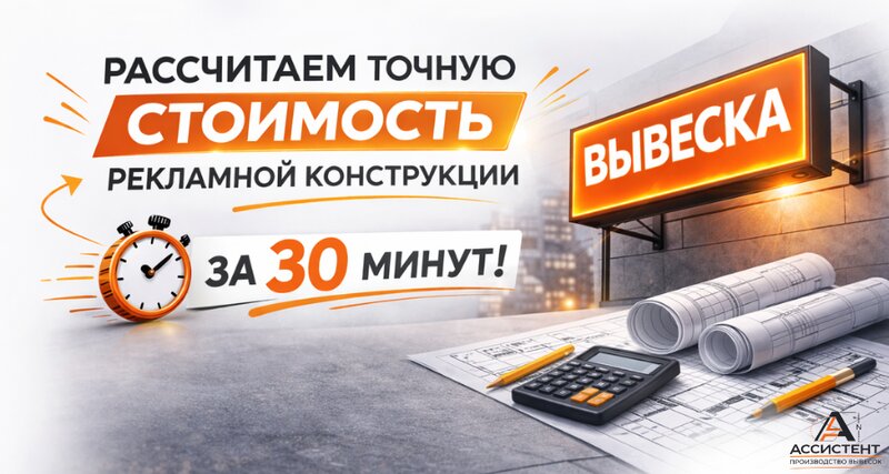 Рассчитаем точную стоимость рекламной конструкции за 30 минут Если вы ищете изготовление вывесок, наружную рекламу под ключ или планируете ...