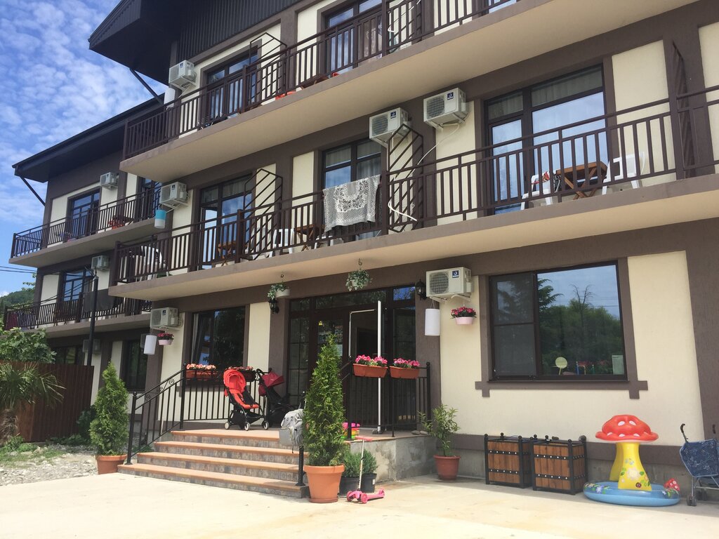 Отличный гостевой дом. Все чистое и новое. Уборка хорошая, хоть и редкая. В номере помимо основной мебели была сушилка для вещей с прищепками, столик, вешалки. Совок с щеткой и тряпочка тоже порадовали. Закрытая территория с отличной детской площадкой, множеством игрушек и батутом! Настольный теннис, бадминтон, книги детские и взрослые. До столовых 2 минуты, до пляжа 5-10. Есть основные магазины, несколько приличных кафе, маркетплейсы в шаговой доступности. В пожелания хозяевам: может конечно надо было спросить, но нам не хватило ножа. Доска была в номере, а ножа нет. И полотенца совсем небольшие, как для рук - непривычно.