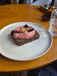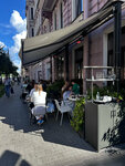 Зашла без бронирования в пятницу вечером, был свободный столик, но это скорее удача. Полная посадка, включая веранду. Повезло с официантом (Константин Энитис), приятный парень, знает меню, советует. На улице жара, садишься за столик сразу наливают воду. Очень понравился тартар из говядины, куриный паштет на ржаном хлебе вкусный, но на мой вкус жидковатый для паштета, подача интересная с шишками. По рекомендации официанта взяла из сезонного меню латте лимонный парфе-вкусно, на десерт трюфели-хорошие. Подача достаточно быстрая, но вот кофе почему-то ждала очень долго. Приятное заведение, буду заглядывать. Хостес не прощаются, либо совсем в запаре и не обращают внимание на уходящих, либо не научили:).