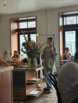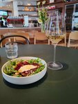 Очень понравилась концепция В основе кофе/вино ( выбор вина очень большой ) , но и еды достаточно до выбора Всегда очереди - значит людям нравится На входе встретила хостел и все рассказала о заведении и взяла в гардероб верхнюю одежду, официанты хорошо знают меню и вежливые Внутри красиво , но как показалось душновато про полной посадки