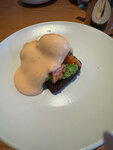 Место приятное, персонал милый и вежливый. Приготовили все быстро, несмотря на аншлаг. Но минус звезда за Бенедикт с форелью. В меню не написано, что соус голландез с добавлением сока из томатов. Бенедикт - классическое блюдо, и если вы добавляете что-то от себя - пожалуйста пропишите это или хотя бы предупреждайте при принятии заказа . На фото в инстаграме выглядело иначе, соус белый с немного желтоватым оттенком (никакого намека на томаты) . в реалии - около розовый соус с очень кислым привкусом, который совсем не сочетается с рыбой и сладким хлебом. Хлеб тоже не очень в тему, но я хотя бы примерно представляла что ожидать от хлеба потому что он прописан в меню. В общем поела не очень вкусно, но доела, потому что была очень голодная с поезда.. но булочка с голубикой просто великолепна, она скрасила весь завтрак !