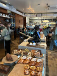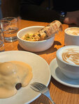 Очень близко друг к другу стоят столы, сидишь и слушаешь разговоры соседа, следовательно и в самом заведение атмосфера суеты и шумно. Ожидать стол на завтраке нужно 10-15 минут прямо в дверях заведения. Зоны ожидания никакой нет, даже снять верхнюю одежду нормально не получится. Кофе водянистый, арт на пенке впечатляет))) Бенедикт с лососем нормальный, но весь вкус перебивает большой кусок бородинского хлеба в основе блюда. Выпечка шикарная!!! Только ради нее можно было бы прийти, если бы она не хранилась прямо на проходе без какого либо ограждения. Посредственное место, забежать позавтракать поблизости можно, но целенаправленно ехать сюда — точно нет!