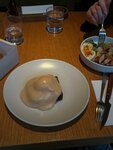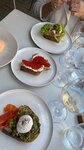 Специально выделили время,чтобы посетить данное заведение. Слышали много положительных отзывов. На входе очередь. Цены в среднем за блюдо 700-800 руб. Заказывали салат зеленый(не помню название точное) с мятой,неплохое. На мой вкус мята сильно перебивает вкус. Ризотто с шафраном и креветками не понравилось! Сильно альденте! Рис прям хрустел. Креветок было не больше 5 шт на блюдо. Пробовали Питу с креветками-никакая,вкуса мало,специй мало. Пробовали такое блюдо в другом месте и есть с чем сравнить. Чизкейк бакский совсем не то,похож на запеканку,нет кремовой серединки совсем. Профитроли,кофе и фреш апельсиновый были вкусные. Я больше посещать данное заведение не буду. Официанты хорошие,стараются. В Питере есть рестораны повкуснее.