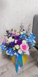 Зашла купить цветы для мамы, флористка внимательно выслушила мои пожелания, и предложила сделать букет в шляпной коробке, мама у меня занятая, нет времени подрезать, воду менять..а коробочку нужно просто поливать, очень удобно! Цветы радуют уже 4й день, выглядят отлично, так что явно еще будут стоять и радовать дальше))