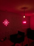 Классная атмосфера, есть игры, чай, лимонады. Можно и поработать и отдохнуть. Красивый интерьер, симпатичный. Удобное местоположение. Кайф. Приятные работники. Приемлемая цена. Вкусные кальяны. Классные неоновые вывески.