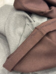 Работа выполнена неаккуратно. Внутри просто кошмар а не шов…. мне кажется даже я сама сделала бы лучше.. Но снаружи штаны выглядит нормально, ничего не торчит и всё ок. Но внутри страх и ужас🫣 Принесла брюки в ателье, чтобы укоротить длину. В пример дала серые брюки, точно такие же, просто цвет другой. Разница швов в разных ателье - на фото.