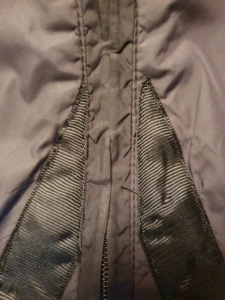 Куртка была сдана в ателье 8 сентября, готова 11 числа - заказ выполнялся три дня. Качество работы, при ближайшем рассмотрении, оказалось на уровне поделок урока кройки и шитья для младших классов. Видимо выполнялась второпях перед выдачей, т.к. время готовности заказа было сдвинуто на 2 часа. Цена работы за перешитую нашивку и две ленты составила 1150руб. Бонус в виде оставленной иголки...