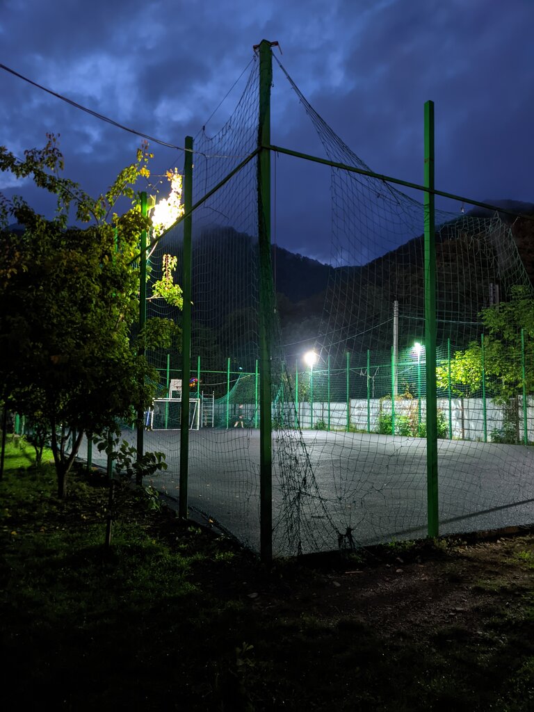 Мини фитбольное поле, баскетбольные кольца, и немного тренажеров
