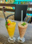 В самом отеле не отдыхали, но пару раз были в ресторане "Атлантик" при отеле. Нам понравилось! Сидели на открытой веранде с шикарным видом на море и скалы "Три сестры" и "Монах"! Винной карты не было, в наличие было только пиво! Но можно со своим по пробочному сбору. Из меню мы выбрали рапаны в сливочном соусе, картошку фри, пиво + безалкогольные коктейли: смузи Черничный и коктейль "Разбитый кокос". Рекомендую!