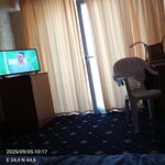 Чисто, уютно. Ванные с душевыми кабинками. Мусор выносят ежедневно и один раз в несколько дней меняют полотенца и постельное белье. Уборка по требованию, в номерах есть таблички "просьба убрать". Перед отелем собственный бетонный пляж с навесом. С пляжа спуск в море, как в большой бассейн - по похожим лесенкам. Разрешено пользоваться частью галечного пляжа соседнего санатория. Можно заказать питание. Персонал внимательный и дружелюбный. Мои окна выходили на противоположную от пляжа сторону. Ночью было тихо и слышен шум волн. Отель стоит немного в стороне от основной набережной, поэтому нет ночных криков и песен. Есть с чем сравнить - приехала на день раньше и переночевала в другом отеле, в центре набережной. На фото сам отель и вид из ресторана во время обеда .