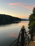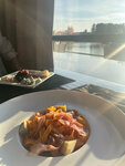 Один из самых уютных ресторанов города. Жаль, что не всегда работают фонтаны на Черноголовском пруду... Приятно наблюдать сквозь стеклянную витрину за водным течением и сапбордистами, иногда проходящими прямо возле свай. По словам сына, ощущение такое, будто сидишь на борту теплохода... Блюда весьма оригинальные. В роллы добавляют красную икру. (Единственный отмечу недостаток по кухне - слишком уж маленькие порции напитков, особенно детского сока). Если выбрать столик внутри здания, то есть возможность послушать фортепиано, скрипку, контрабас. Нам пару раз доводилось. В зале красивый интерьер и всегда царит прохлада.