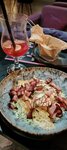 В « Атоме» летнее меню . В этот раз попробовали салат "Пинаколада" с ананасами и крабовым мясом. Комбинация свежих ингредиентов создает легкость и гармонию вкусов. Ананасы добавляют сладость, а крабовое мясо — нежность, что делает салат не только вкусным, но и очень сытным. Коктейль "Май Тай" тоже не разочаровал. Сочетание рома, миндаля и цитрусовых создало яркий и освежающий вкус, который идеально дополнил наш вечер. В целом, "Атом" — это отличное место для приятного времяпрепровождения . А еще коктейли подаются в очень классных стаканах