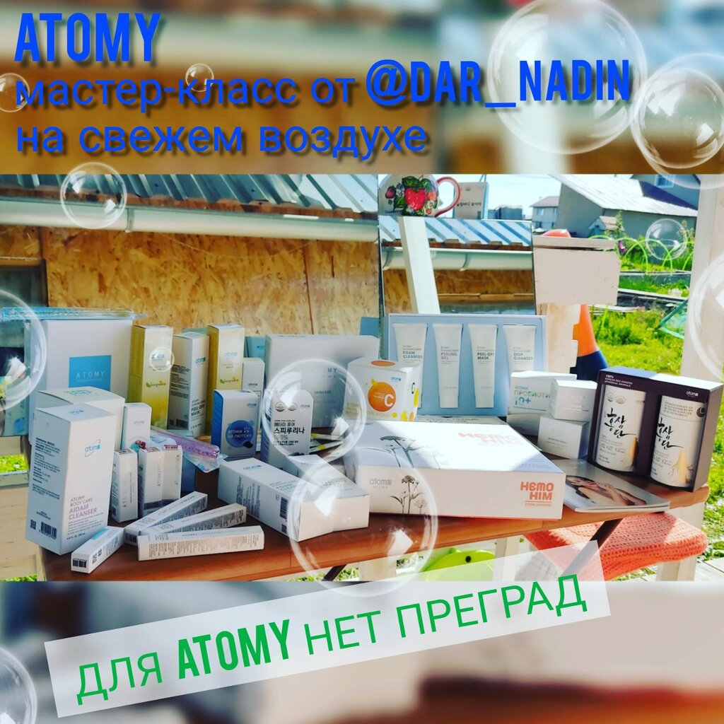 Хороший центр корейской косметики Атоми.Надежда,приятная,доброжелательная, отлично знает всю продукцию,поможет подобрать нужный продукт.Попробовала крема,зубную пасту ,очень понравились.
