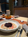 Удивительное открытие осени среди моего ресторанного кругозора! Вообще не на слуху, хотя я стараюсь держать руку на «пульсе» и интересуюсь хорошими, интересными и вкусными локациями. А тут вдруг среди непримечательных домиков и не популярной локаций с, простите, пивнушками по соседству, оказался такой особенный ресторан. Находясь в котором, начиная с гардеробной зоны захватывает дыхание от тихой роскоши интерьеров (см. фото настенного панно с рыбками), приглушенного освещения, услужливого персонала. Сервировка - вау! Посуда - вау! Принесли влажные салфетки перед ожиданием заказа А какое обширное меню!!! Выбрала свекольное ризотто- это уже интересно. С соусом а-ля Том ям, где было множество креветок. И приятно большая порция. Не знаю как Вы найдете этот изысканный ресторан, но если Вы читаете этот отзыв - обязательно попробуйте все сами.