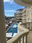 Шикарный отель для семейного отдыха с детьми. Отдыхаем тут уже второй год подряд и искать что то другое даже не хочется! Чистая, уютная территория с бассейном, шезлонгами и столиками под крышей для комфортного отдыха. По бокам корпусов есть две веранды со столами под зонтами. Каждое утро территорию убирают. В отеле чисто всегда! Отдельное огромное спасибо руководству за организацию работы своего персонала на 5+++. Столовая. Чистая, просторная, с разнообразным выбором, где можно накормить даже самого привередливого ребенка. Работает только для гостей отеля, с улицы посторонние не ходят. Всегда вкусно, готовят на качество , а не количество! Выпечка своя, свежая и очень вкусная! Отдельная благодарность Екатерине! Второй год отдыхаем в Люксе, для семьи с детьми разных возрастов идеально! Маленький спит в одной комнате, в другой можно отдохнуть днем в жаркую погоду. Просторный номер со всеми удобствами. Шикарный балкон с диваном и двумя креслами, где так же можно вечером посидеть всей семьей. Уборка каждый день ( если не забудешь оставить ключи) Смена белья стабильно на 4 день. Персонал сам предупреждает на кануне постояльцев об этом. Что то же очень хорошо. В номере телевизор в каждой комнате, чайник и минимальный набор посуды) Администрация девушки супер!!! Всегда на месте и готовы ответить на любой вопрос или помочь! На территории после 23:00 тишина) если даже кто то засидится и будет шуметь, сразу просят разойтись! Рядом с отелем тоже после 23:00 тихо, нет шумных компаний. До моря близко, по пути много разных кафе, магазинов, аптек. Все нужное под рукой. Пляж хороший, чистый. Можно просто прийти лечь и арендовать лежаки. С вокзала встречают на комфортном минивэне, есть детское авто кресло. На территории есть два бара, один где делают коктейли и второй где можно приобрести пиццу, картошку фри, нагетсы, хачапури и т.п. готовят сами, все очень вкусное. В след году вернемся снова)
