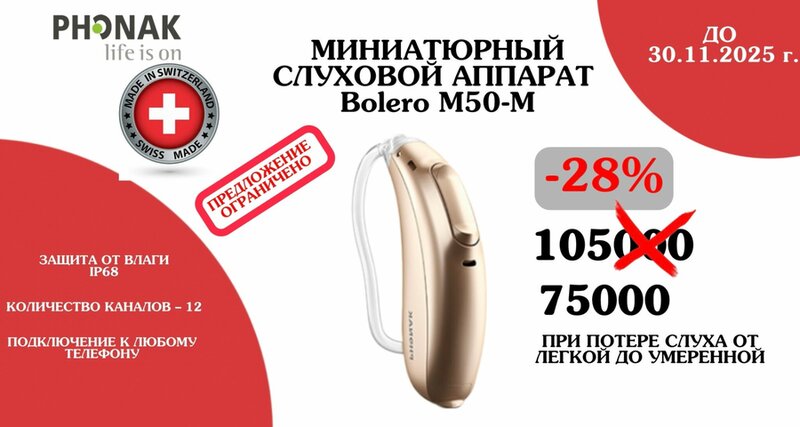 Только в декабре! Слуховой аппарат Phonak Bolero M50 M – миниатюрная заушная модель продвинутого уровня с искусственным интеллектом по выгод...