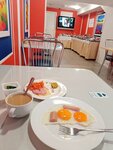 Удобно расположена ,легко заезжать с объездной. Расположена среди контрастного квартала, рядом высотка, тут же избушка. Мини гипер Лента в шаговой доступности. До монетки надо прогуляться. Понравилось в гостинице- - чистота!!! Это прям сильная сторона!Молодцы!( Тьфу,тьфу,тьфу) В номерах уютно, мебель в хорошем состоянии, кровать удобная . Мне возможно попался новый матрас, ну очень удобный, упругий, не продавленный. Телек новый , пульт, шторы массивные, холодильник небольшой Что не понравилось: Унитазы на ступеньках, слишком высоко стоит. Санузел не большой, душевая, все очень компактно, если не сказать тесно, но однако удобно, за исключением унитаз. Есть кафе, можно за доплату перекусить, на выбор приготовят простую пищу. Типа шведский столик, обилием и ассортиментом не балует. Сухих завтраков видов 6 ( кто их есть) Пакетики чая на двух больших тарелках ( видимо что бы стол заполнить) Салатики , рулетики с содержимым из вчерашних салатиков( за три дня замечаешь) Вообщем особо не наешься, но перекусить можно.