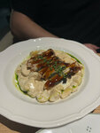 Очень интересное место !) Красивое … У окна уютно … Официант Арина ❤️ Все заказанные блюда оказались божественными ! Я думала пицца не удивит … но мед и виноград …. Салат настолько вкусные качественные ингредиенты …. Паста …. Ну тут то что … удивили …. Соус …. Угорь … страчателла … бомба … Десерт просто бомба … Рекомендую 👍