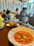 Место с прекрасным интерьером и атмосферой, очень красиво оформлен зал и столики, диваны действительно мягкие, советую с ними столик) По меню все очень вкусно, заказывала томатный суп с морепродуктами и салат. Десерт всегда шикарный!!! Обслуживание не на 5 баллов, но видно старание официантов. Хостес на входе всегда приветливая
