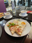 Приезжали на два дня! В номере чисто, жаль что фен просто ужасный, мое чутье меня не подвело и я брала свой. Телевизор работает непонятно как сбиты настройки, не стали звать администратора из-за этого конечно. Нет полотенца для ног в ванной и освежителя воздуха это конечно мелочи но с ними было бы комфортнее. Расстроили нас и просроченные мыльные принадлежности(на фото видно), заметила уже когда использовала один пакетик, после чего пошла аллергия🫣. Завтрак хороший и разнообразный, можно выбрать по желанию.