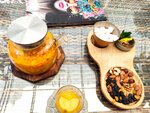 Из того что попробовал в этом месте, только курзе были съедобны. Опять же сказать что съедобны, а не вкусны) Хумус с говядиной - кислый на вкус , консистенция жидкая с крупинками. Очевидно нарушена технология и сроки хранения. Хумус быстро портится. Говядина копчёная норм, но кислый хумус в котором она плавала- все портил. Официант на это отреагировал так- шеф попробовал- хумус вкусный и поставил обратно на стол.- подразумевая- ешьте) спасибо, больше не приедем.