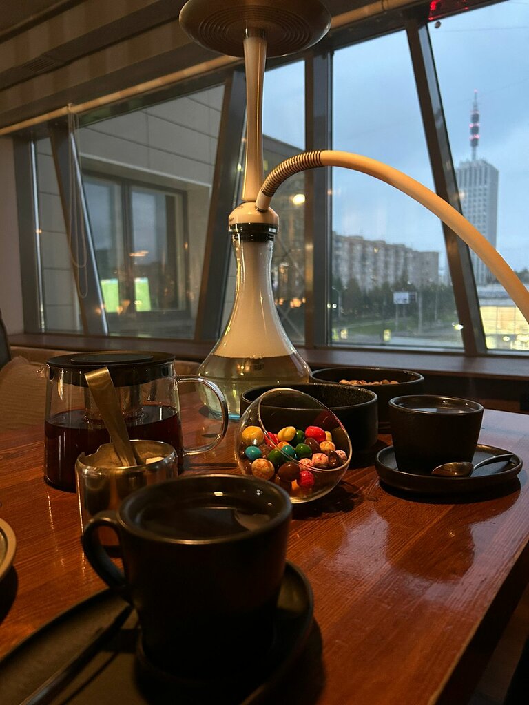 Снаружи выглядит как премиум ресторан. Располагается на втором этаже, к сожалению лифт не работал. При входе ожидают сотрудники которые сопровождают клиентов до своих мест. Атмосфера супер, отмечал день рождения и мне все понравилось. На развернутый запрос моего друга о вкусе кальяна, кальянщик и глазом не моргнул и все понял. Принесли примерно через 10 минут. Еда безусловно вкусная, не придраться. Пицца Пепперони пушка, боул впервые пробовал и мне понравился(меня смущал ананас, но он идеально там подходит поверьте), и Креветки в кляре с соусом Спайси