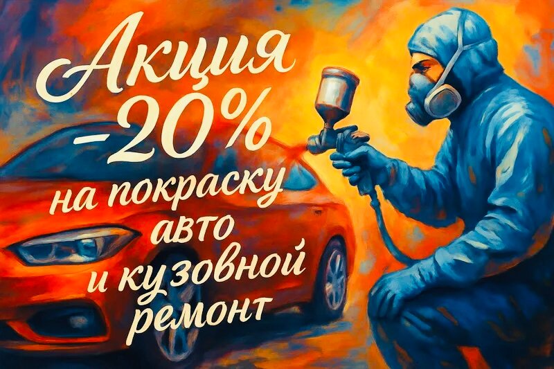 Покраска авто и кузовной ремонт со скидкой -20%. Акция действительная с 15 декабря по 15 января 2026г. Успей записаться в ремонт по выгодной...