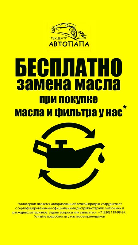 БЕСПЛАТНАЯ замена масла, при покупке масла и масляного фильтра в СТО "Автопапа".